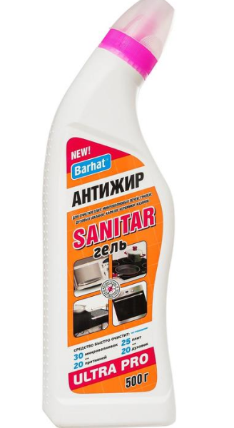 Средство моющее Ультра Санитар гель густое эффективное универсальное средство для удаления жира и нагара с керамических, га-зовых и электроплит, в микроволновых печах, с посуды, в духовых шкафах, с грилей, казанов,