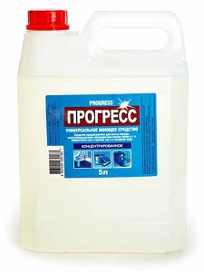 Средство универсальное Прогресс 5л. Предназначено для мытья посуды, сантехоборудования, облицовочной плитки, полов и т.п. Эффективно как в горячей, так и в холодной воде.
