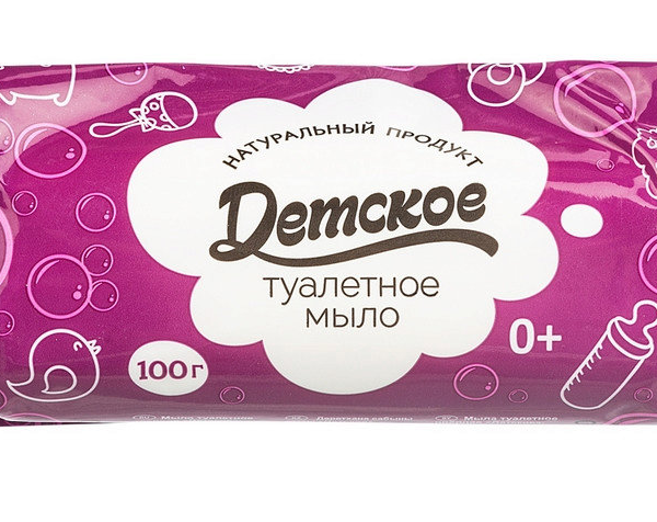 Детское туалетное мыло весом 90 г в обёртке «АГРОПРОМ-ЮГ» предназначено для ухода за лицом и телом, рекомендуется с младенческого возраста (возраст 0+).