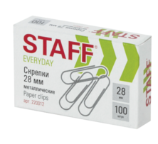 Металлические скрепки без покрытия надежно скрепляют документы, не повреждая бумагу. Скрепки имеют размер 28 мм. В картонной упаковке 100 скрепок.