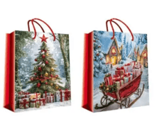 Бумажные подарочные пакеты-сумки новогодней тематики Люкс ламинированные 32×45×11 см используются для упаковки подарков к Новому году.