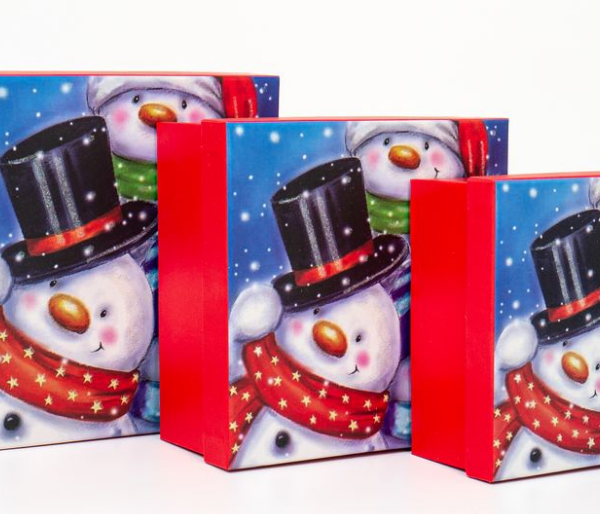 Набор коробок НГ 3в1 квадрат 20*20*9,5/15,5*15,5*7,5см Веселые снеговики