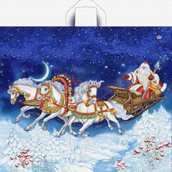Новогодний пакет с петлевой ручкой 60*50см, 60мк. Используется для упаковки подарков, различных товаров. Продается по 25 штук.