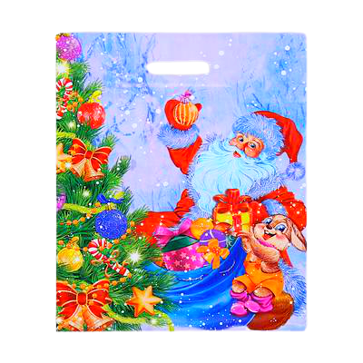 Новогодний пакет с вырубной ручкой, размер 38*47см, плотность 60мк. Пакет служит для упаковки косметических средств, подарков, игрушек. Продается по 50 штук.