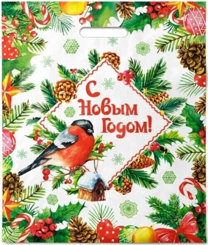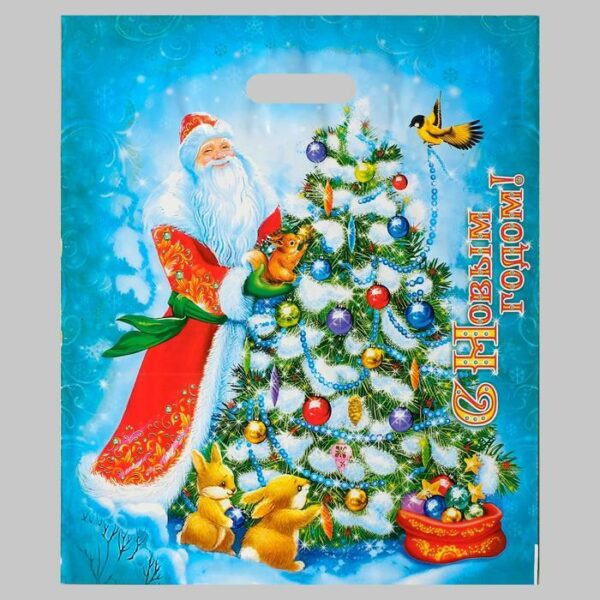 Новогодний пакет с вырубной ручкой, размер 40*47см, плотность 45мк. Пакет служит для упаковки небольших подарков, предметов одежды, продуктов. Продается по 50 штук.