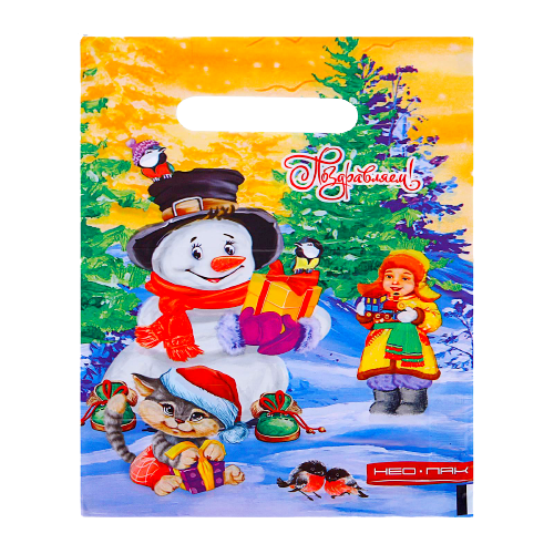 Новогодний пакет с вырубной ручкой, размер 20*30см, плотность 30мк. Пакет служит для упаковки косметических средств, бижутерии, небольших подарков, игрушек.