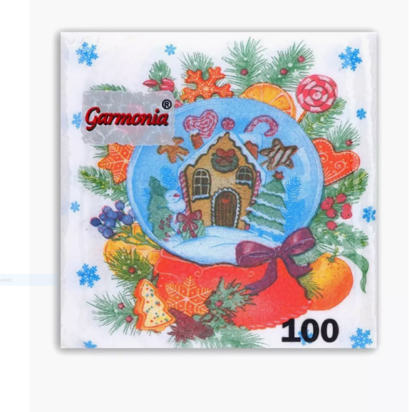 Салфетки НГ бумажные однослойные 100 листов, Снежный шар, необходимы для применения на предприятиях общественного питания, ресторанах, а также для банкетов, фуршетов, для оформления праздничных столов.