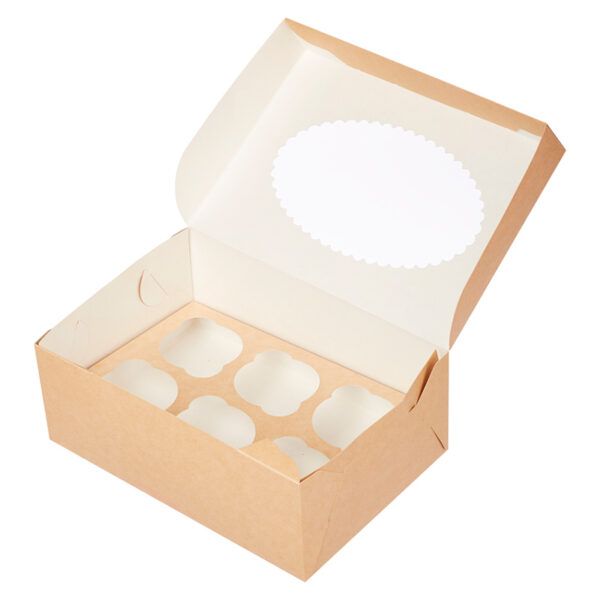 Коробка для 6 капкейков, размер 250*170*110 без окна. Самосборная и легкая, не требует дополнительного скрепления. Ложемент внутри выполнен под каждый капкейк, что позволит не соприкасаться с соседними продуктами и стенками коробки. В коробе 100 шт.