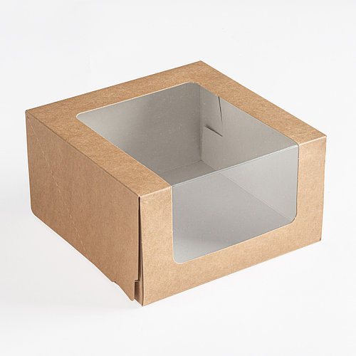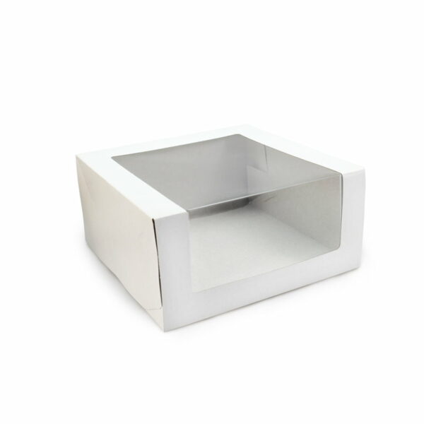 Коробка для торта размером 220×220×110 мм с окном из белого картона подходит для транспортировки и хранения тортов. Коробка легко складывается по линиям изгиба, боковое и верхнее окно позволяют рассмотреть содержимое, не открывая коробку.