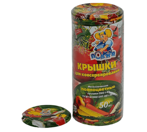 Крышки металлические закаточные, используются для укупоривания стеклянных консервных банок с венчиком горловины типа I номер 82. Крышки применяют при консервировании овощей и фруктов, мясо-овощных консервов, томатной пасты, варенья, джемов, тушёнки, соков, компотов.