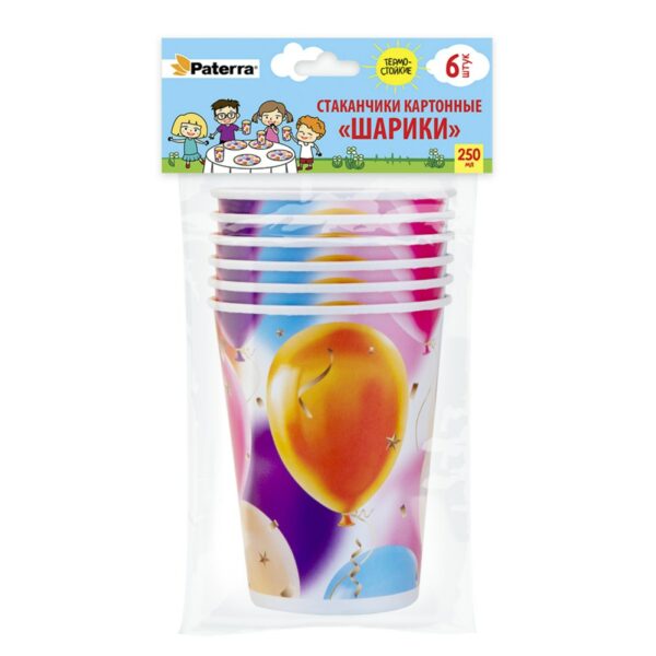 Стакан бумажный 250мл Д-80 Шарики 6шт/уп 30уп/кор Патерра
