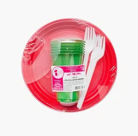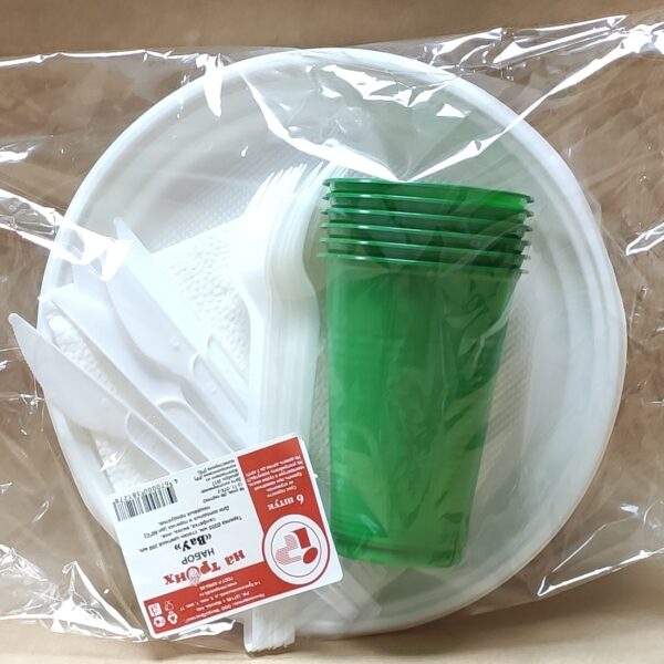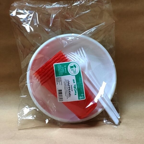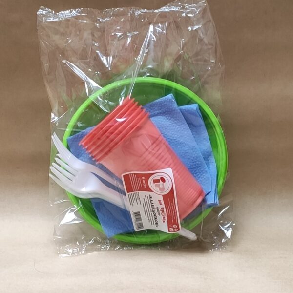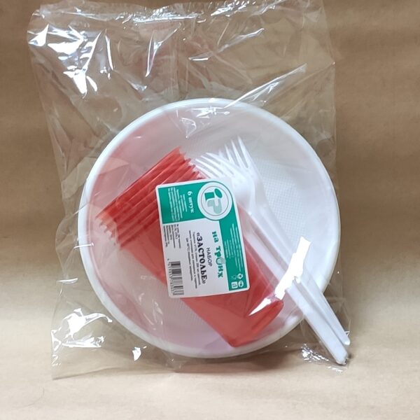 Набор одноразовой посуды "Застолье" на 6 человек: тарелка 170мм, стакан цветной 200мл, вилка. Используется для холодных и горячих пищевых продуктов. Подходит для разных мероприятий, пикников, туристических походов.