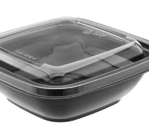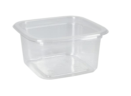 Контейнер объёмом 200 мл с размерами 93×93×48 мм из ПЭТ, в комплекте с крышкой, предназначен для упаковки, перевозки, хранения и заморозки пищевых продуктов. Используют для фасовки салатов, десертов, овощей, солений, холодных закусок.