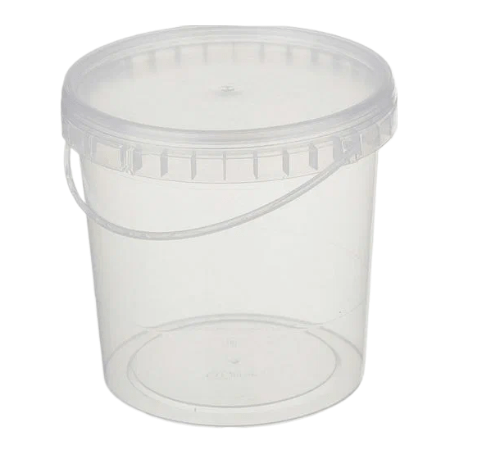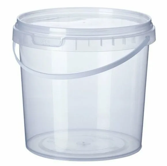 Ведро пищевое круглое с крышкой, без ручки. Состав: ПП. Цвет прозрачный. Вместимость, объем: 1 л.