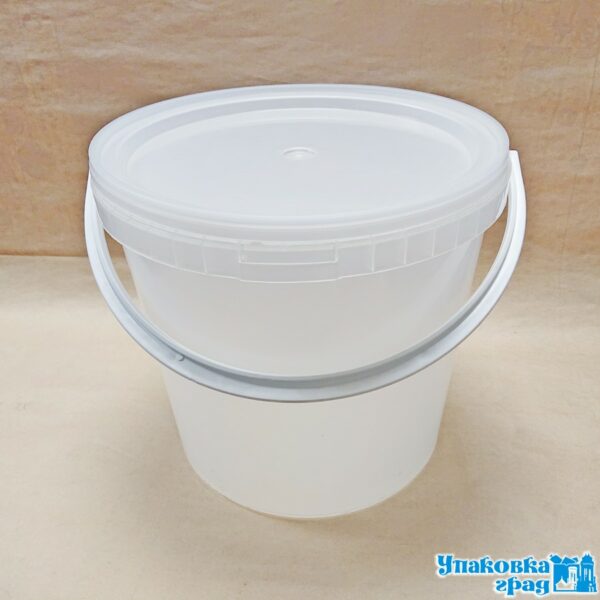 Ведро пищевое круглое с крышкой, ручкой и к/з. Состав: ПП. Цвет белый. Вместимость, объем: 10 л.