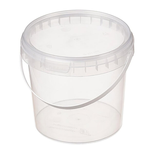 Ведро пищевое круглое с крышкой, ручкой и к/з. Состав: ПП. Цвет прозрачный. Вместимость, объем: 1 л.