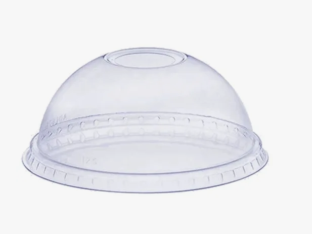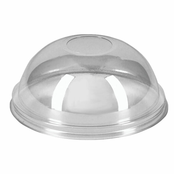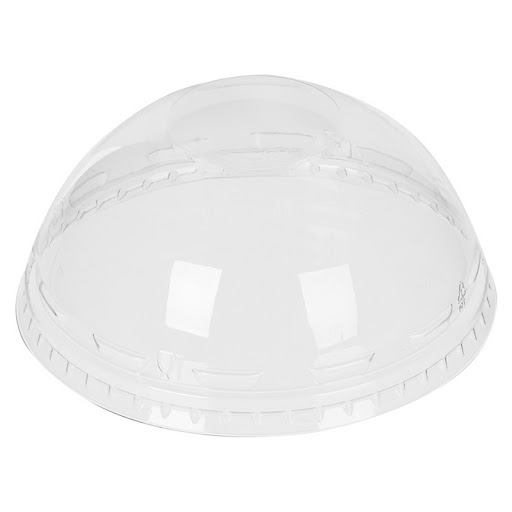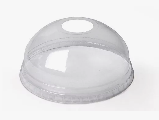 Купольная крышка диаметром 95 мм, выполненная из прозрачного ПЭТ-пластика, используется для герметичного закрытия стаканов с холодными напитками.