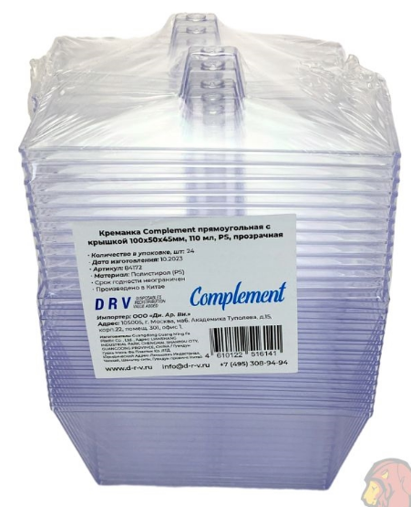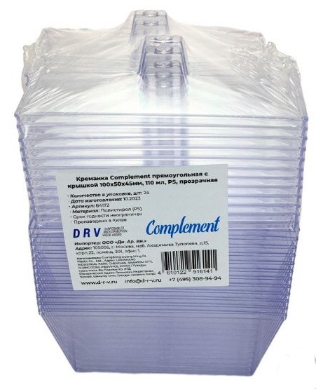Креманка Complement прямоуг.100*50*45мм 100мл +крышкаPS проз 24шт*48/1152