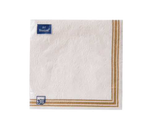 Салфетки бумажные 3-х слойные 16 листов, Барокко Рамка золотая, используются на предприятиях общественного питания: закусочных, столовых, кафе, кофейнях, ресторанах, а также для банкетов, фуршетов, для оформления праздников и сервировки стола.