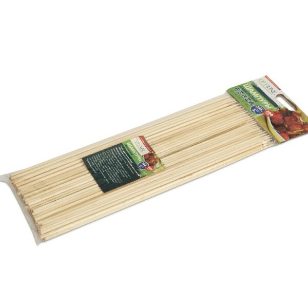 Шампуры из бамбука, длина 25см, количество в упаковке 100 шт. Используются для приготовления мини-шашлыков, овощей на гриле, углях, а так же в духовке, микроволновке. Экологически безопасны, не меняют вкус продуктов.