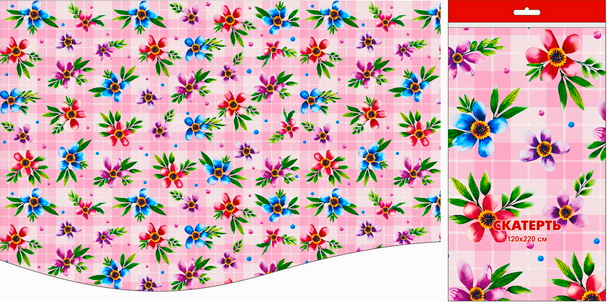 Скатерть 120*220см ПВД ИН Цветочная поляна 50шт/уп