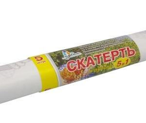 Скатерть одноразовая в рулоне. Изготовлена из полиэтилена, размер 110*180см, в рулоне 5 штук (разделяются по перфорации), плотность 35мкм. Станет отличным украшением для праздничного стола на любом мероприятии.