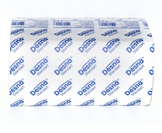 Бумажное полотенце DESNA STANDART, 200 листов, V сложение, однослойное, в составе 100% целлюлоза, размер листа 23*23см.