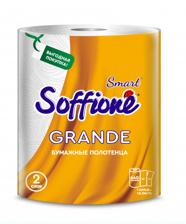 Бумажные полотенца Soffione Grand Smart используются для уборки и удаления влаги, очистки поверхности.Листы легко отрываются, быстро впитывают воду и жир.