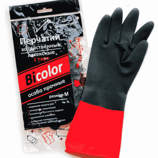 Перчатки латексные «Биколор» M черно-красные (12пар/уп/240 КП) предназначены для выполнения хозяйственных, садовых и строительных работ. Перчатки обеспечивают защиту рук от воды, растворов нетоксичных веществ, бытовых химикатов и загрязнений.