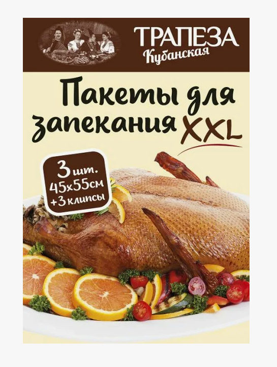 Пакет для запекания 45*55см XXL 12мк (с клипсами) 3шт