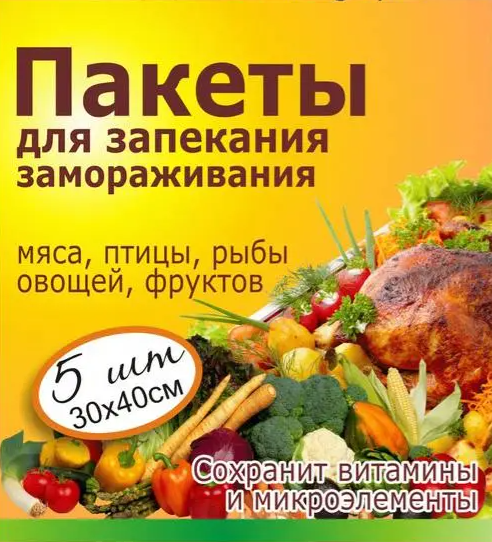 Пакеты для запекания с завязками. Ширина 30см, высота 40 см.Позволяет приготовить блюда в собственном соку без использования жира, сохраняет витамины и микроэлементы. Можно использовать в духовых шкафах и микроволновых печах, а также для замораживания продуктов.