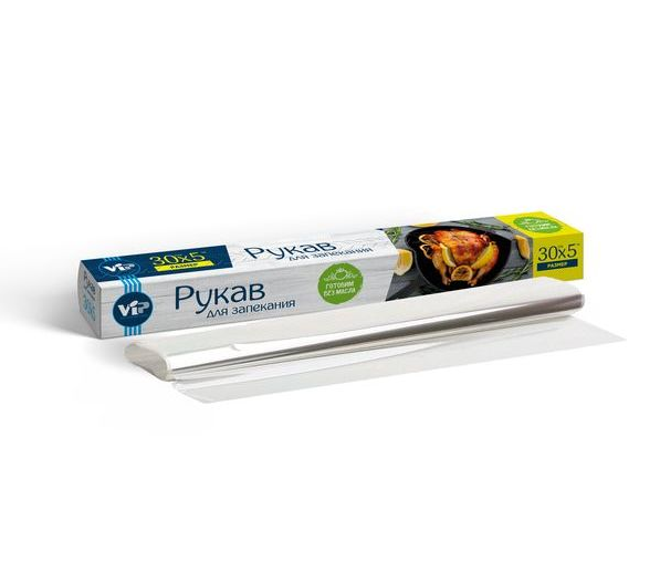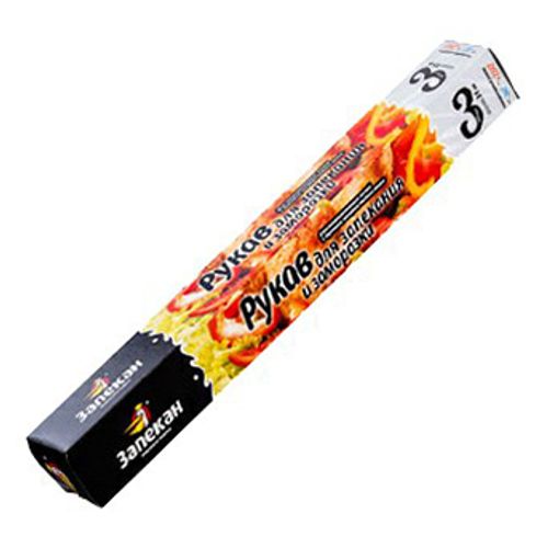 Рукав для запекания с завязками предназначен для приготовления птицы, мяса, рыбы, овощей. Выдерживает высокие температуры (до 230 °С). Ширина 30см, длина 3м.