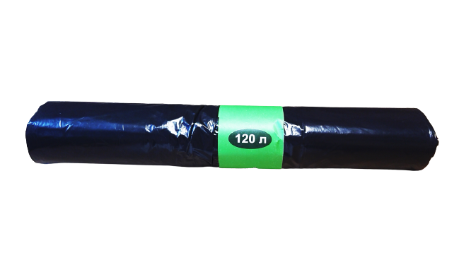 Пакет для мусора черный в рулоне. Объем 120 литров. Количество пакетов в рулоне 20 штук. Идеально подходит для использования в быту, в учреждениях образования, здравоохранения, общественного питания.