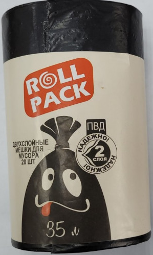 Мешки для мусора РОЛЛ ПАК 35л, 20штук в рулоне. Двухслойные надежные мешки изготовлены из полиэтилена высокого давления (ПВД). Идеально подходит для использования в быту, в офисах, в учреждениях образования, здравоохранения.
