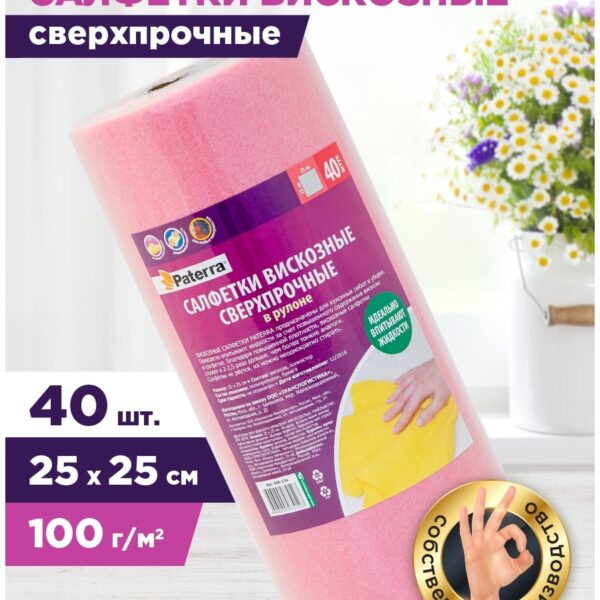 Салфетка 25*25см вискоза рулон 40шт Сверхпрочная 12шт/уп