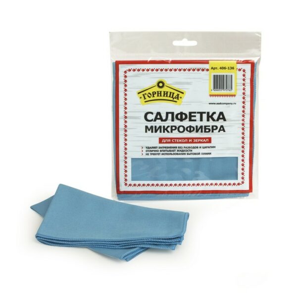 Салфетка микрофибра 35*35см голубая для стекол Горница /50/