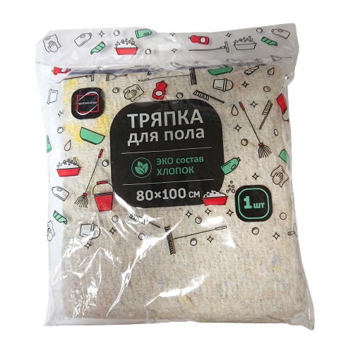 Тряпку для пола размером 80×100 см ХПП в индивидуальной упаковке используют для уборки помещений, мытья полов и протирания поверхностей.
