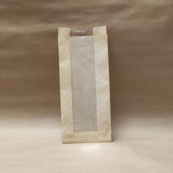 Пакет бумажный с окном. Размер 170*100*80*300 мм. Используется для упаковки хлебобулочных изделий. Выпечка, помещенная в такой полупрозрачный пакет, выглядит более аппетитно.