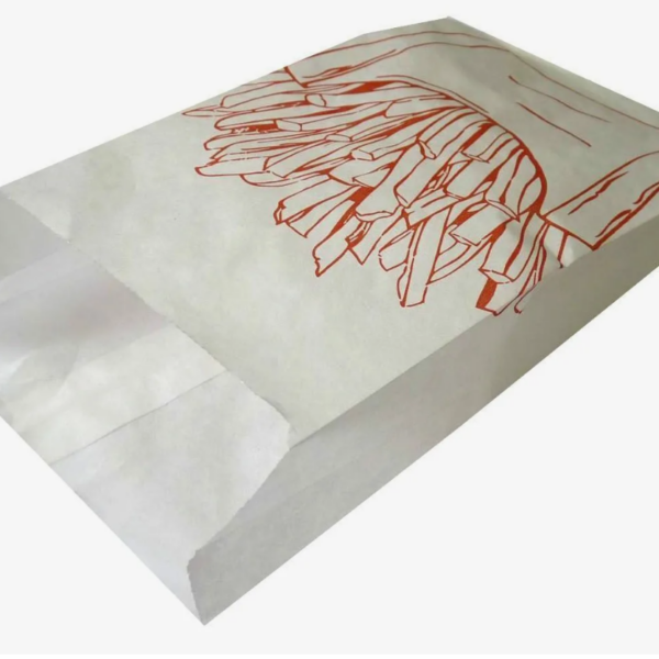 Пакет бумажный из пергамента, жиростойкий, с рисунком для картофеля фри. Размер 115*110*30 мм. Эстетично выглядит, позволяет легко взять с собой любимые продукты. Продается по 100 штук.