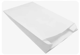 Пакет бумажный белый, размер 140*40*250 мм. Используется для упаковки продуктов питания, бытовой химии, косметики, предметов искусства.