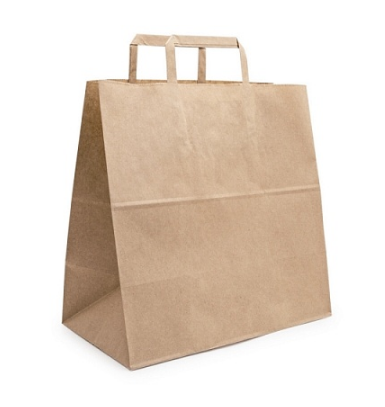 Пакет бумажный Крафт, размер 260*150*340 мм. Используется для упаковки продуктов питания, бытовой химии, косметики, предметов искусства.