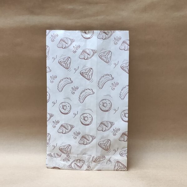 Пакет бумажный жиростойкий, размер 250*140*60 мм. Используется для упаковки пончиков, бутербродов, круассанов в пунктах быстрого питания. Экологичная эстетичная упаковка дополнит аппетитного настроения любой выпечке.