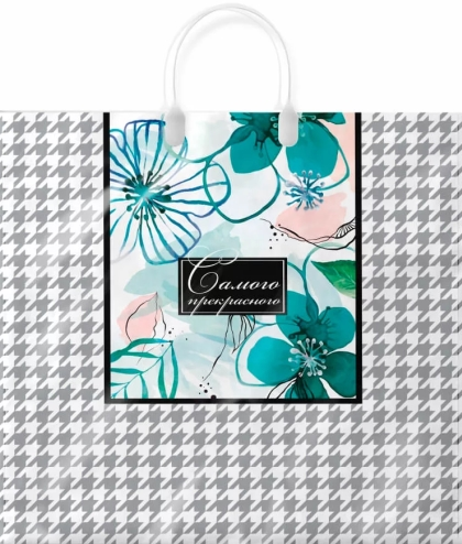 Пакет с пластиковой ручкой, размер 38*35*10 см. Красивый плотный пакет подходит для использования в быту и как подарочная упаковка.