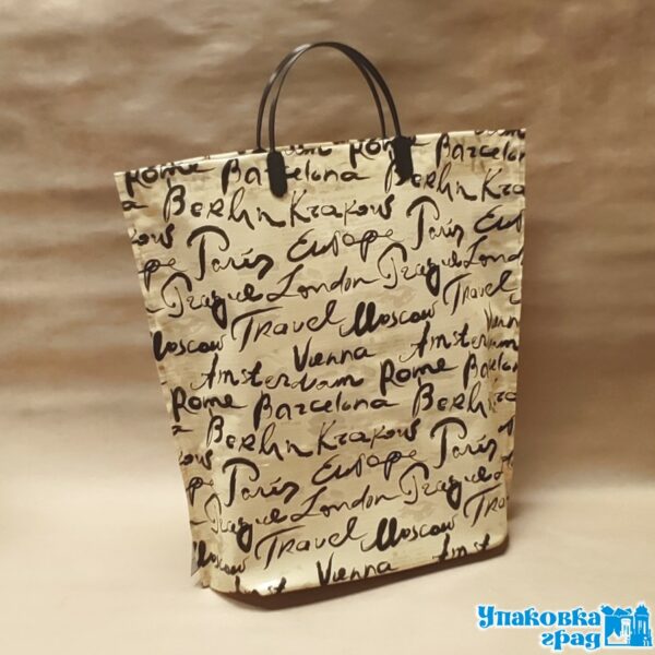 Пакет ламинированный многослойный с оригинальным дизайном. В дно пакета впаяна донная складная вставка, которая усиливает прочность и дает возможность поставить его при необходимости, внутри и снаружи есть пара карманов. Пакет легко сложить и взять с собой в сумочку. Он прочный, надежный, выдерживает содержимое до 20 кг.