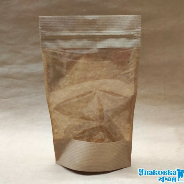 Пакет дой-пак 120*185мм Крафт окно 100мм зип-замок 60г/м2 /100/
