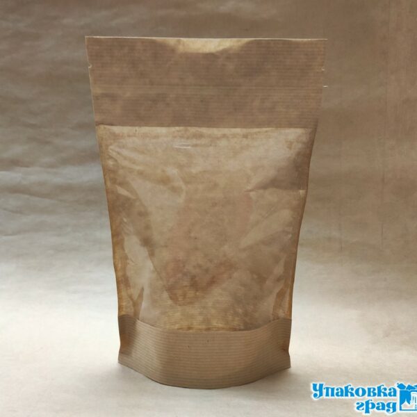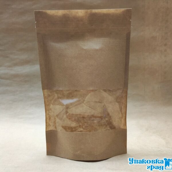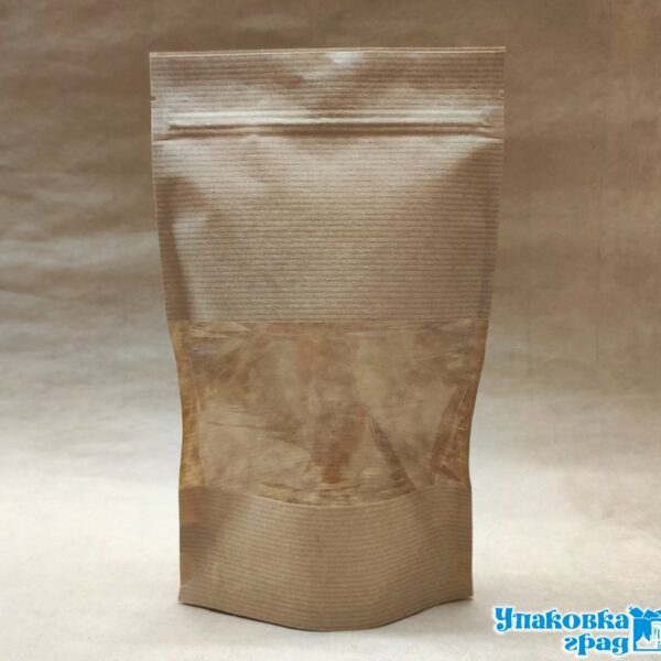 Пакет Дой-Пак 150*240+35+35 бум. Крафт с замком больш. окно/500шт