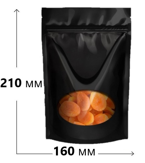 Пакет Дой-Пак 160*210+40+40с черный овал окно 50шт/200 АП