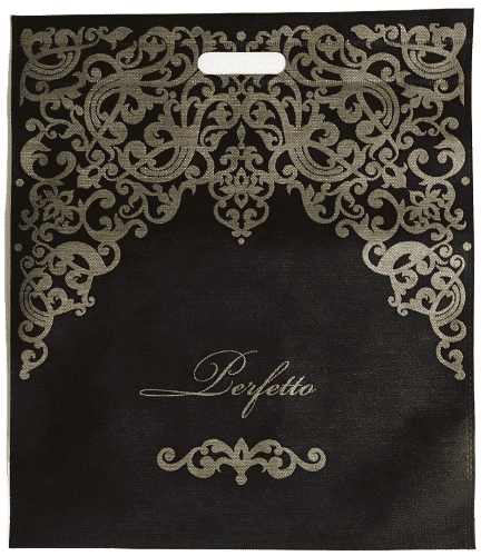 Сумка черная изготовлена из спанбонда, размер 40*46см с вырубной ручкой. Используется для упаковки и транспортировки различных товаров.