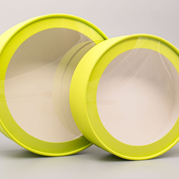 Набор коробок 2в1 шайба H7хD21/ H6хD18см, с окошком, завальц.край, фисташковый