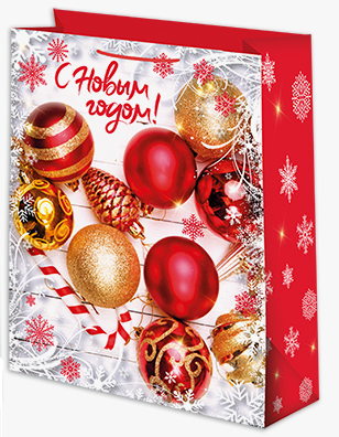 Новогодняя бумажная подарочная сумка-пакет размером 22*31*10см изготовлена из прочного ламинированного картона, имеет надежные веревочные ручки. Сумка идеально подойдет для упаковки подарка к новогоднему празднику!